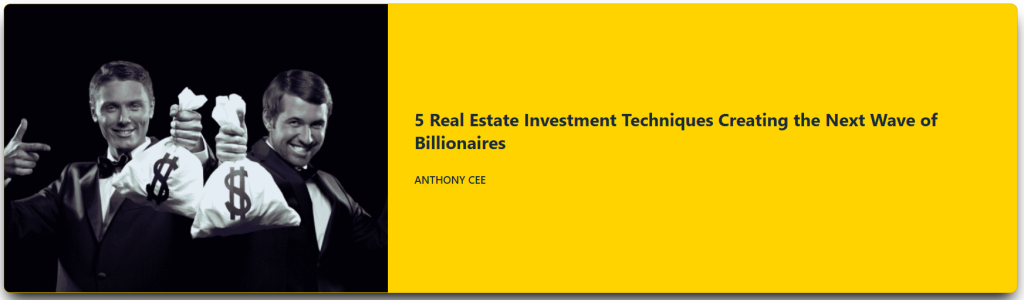 And here, you will find 5 Real Estate Investment Techniques Creating the Next Wave of Billionaires