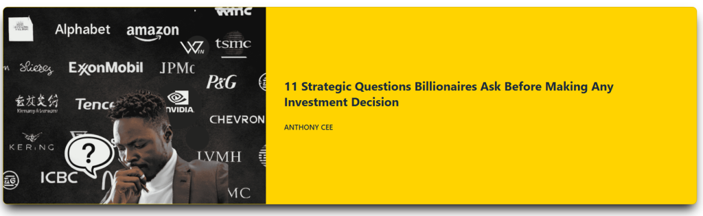 And if you want to invest like the top 1%, here are 11 Strategic Questions Billionaires Ask Before Making Any Investment Decision. These questions move you from guessing to investing with clarity, purpose, and unshakable confidence.